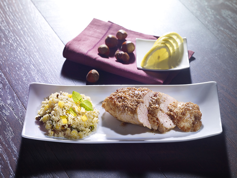 Ris de veau en poudre de noisette, taboulé aux fruits