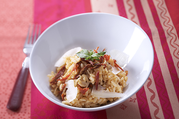 Originaire du nord de l'Italie, le risotto se prépare avec un riz riche en amidon et non étuvé (Carnaroli ou Vialone Nano Semifino ou Arborio).