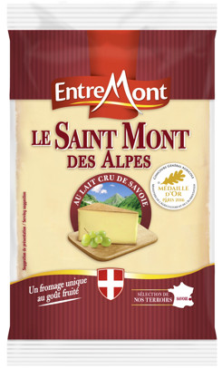 Fabriqué à La Bâthie en plein cœur de la Savoie dans une fromagerie traditionnelle, le Saint Mont des Alpes, fromage à pâte pressée cuite, est le résultat d’un savant mélange : un lait cru de qualité issu de vaches élevées localement allié au savoir-faire des maîtres fromagers Entremont.