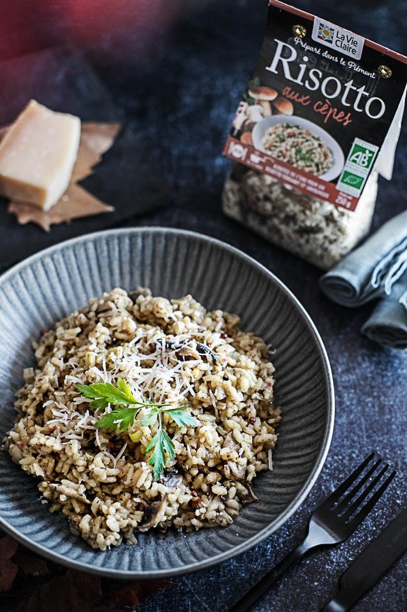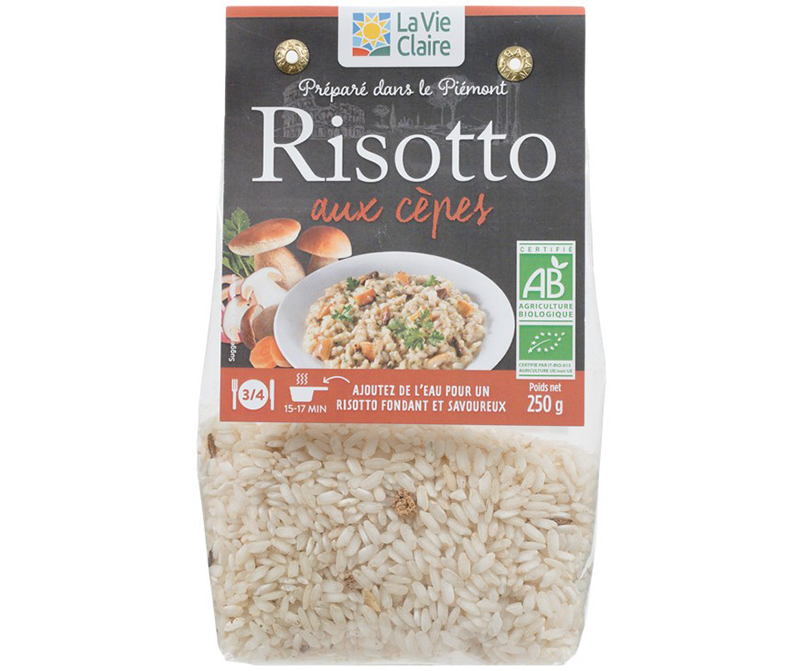 La Vie Claire vous propose de découvrir son délicieux risotto au cèpes. Préparé en Italie avec le meilleur des riz italien, le Carnaroli et subtilement agrémenté de cèpes, ce risotto est facile et rapide cuisiner. Il régalera votre famille ou vos amis à coup sur !