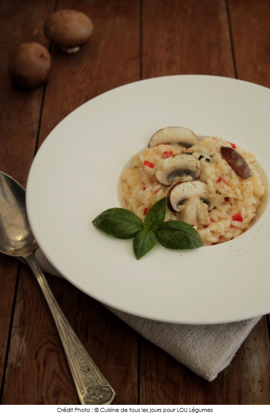 Astuce LOU : Vous pouvez remplacer les Bella Rosés par 2 sachets de champignons LOU façon Risotto et, pour plus de gourmandise, accompagnez ce plat avec des chips de parmesan.