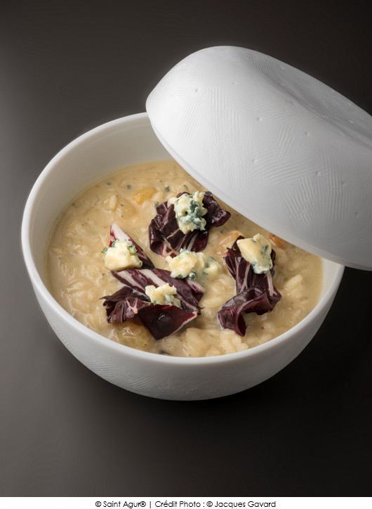 Risotto, radicchio, raisins blonds, Saint Agur®
