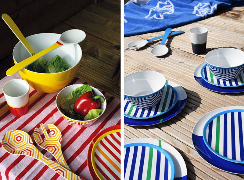 Un Mix & Match original, rappelant les designs des chaises longues, parasols et maillots de bain colorés, qui mettent en valeur cette élégante collection de vaisselle pratique et réutilisable, pour l’intérieur et l’extérieur.
