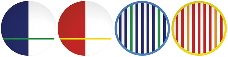 Riviera Bright s’inspire des graphismes et des tonalités des nos belles stations balnéaires; Biarritz ou La Baule, surfant entre motifs hexagonaux, rayures et teintes vives.