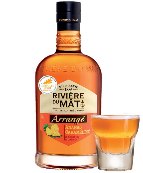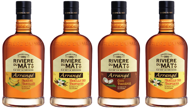 Spécialité originaire de la Réunion, les Rhums Arrangés RIVIÈRE DU MÂT sont élaborés à base de Rhum Blanc de sa Distillerie, de macérâts de fruits et d’épices sélectionnées. Vanille des Tropiques, Coco Torréfié, Banane Vanillée et Ananas Caramélisé, la gamme d’Arrangés RIVIÈRE DU MÂT propose quatre recettes déjà cultes.