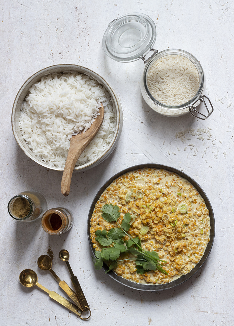 Le terme “Dahl” désigne les “lentilles” en Inde et au Népal. Il est couramment utilisé pour désigner un ragoût de lentilles épicé et pimenté. Ici accompagné de riz, ce plat est riche en protéines.
