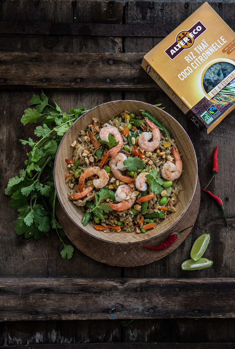 Riz thaï Coco Citronnelle sauté aux légumes et crevettes