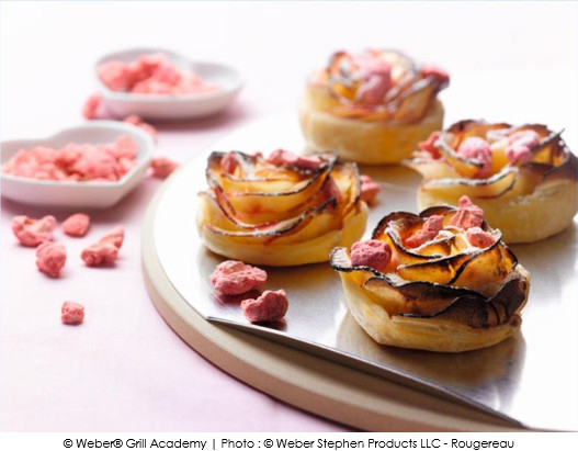 – Disposez les roses ainsi obtenues, sur la plaque de cuisson de la pierre à pizza weber style.