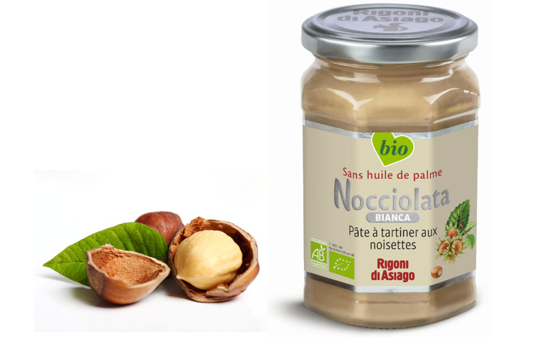 La recette exclusive de Nocciolata Bianca, fruit de 2 années de recherche, bouleverse les codes de la pâte à tartiner. Si elle ne contient pas de chocolat, elle fait la part belle à la noisette, ingrédient principal (30%), riche en antioxydants, en acides gras mono-insaturés (Oméga 9), en vitamine E, en magnésium, etc. Son goût est sans équivalent : c’est celui de la noisette, délicatement assagie par la douceur du lait, proche du praliné, avec une incroyable longueur en bouche. Et l’apport en sucres est réduit de 30%*, remplacé par une fibre naturelle, bio, l’inuline, qui n’impacte pas la glycémie car elle n’est pas digérée par l’intestin.