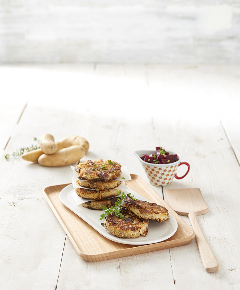 SERVEZ les röstis bien chauds accompagnés d’une salade de betteraves.