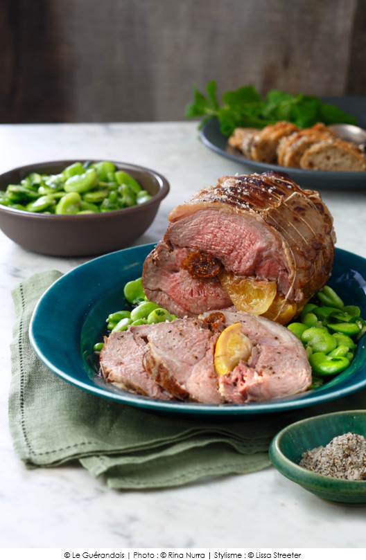 Idée ++ : Apportez vos citrons confits (coupés en 4) et vos figues sèches (coupées en six) à votre boucher. Demandez-lui de désosser le gigot, de le farcir avec les fruits, puis de le barder.