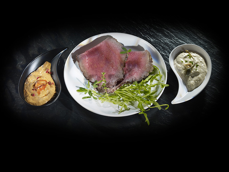 Rôti de bœuf froid, sauces océanes