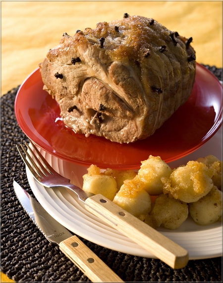 2• Piquez le rôti de porc de clous de girofle tous les 3 cm.