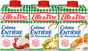 La nouvelle Crème Entière Semi-Épaisse de Normandie est disponible au rayon longue conservation en lot de 3 briques de 20 cl chacune : un packaging astucieux, qui préserve les qualités organoleptiques de la crème et facilite le dosage.