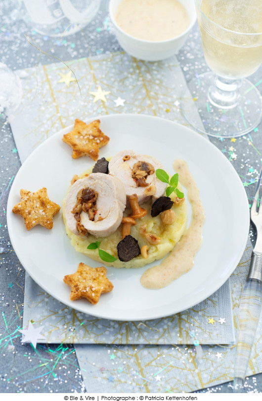 Roulade de dinde, champignons et crème champignons aux truffes