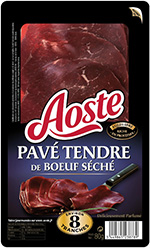 C’est désormais possible avec le Pavé de bœuf séché, nouveauté Aoste 2015. Naturellement peu gras mais riche en goût et en protéines, le Pavé de bœuf séché a tout pour plaire! Sa texture tendre et ses notes herbées et citronnées séduiront les amateurs de charcuterie savoureuse comme tous ceux qui veillent à leur équilibre alimentaire. Il s’impose aussi facilement en alternative gourmande à la traditionnelle viande de porc !