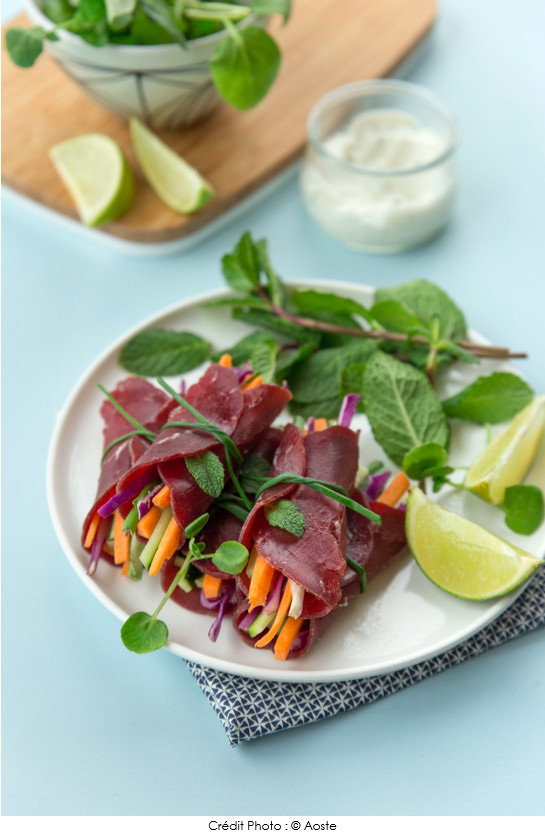 Rouleaux de pavé de bœuf séché aux légumes de saison