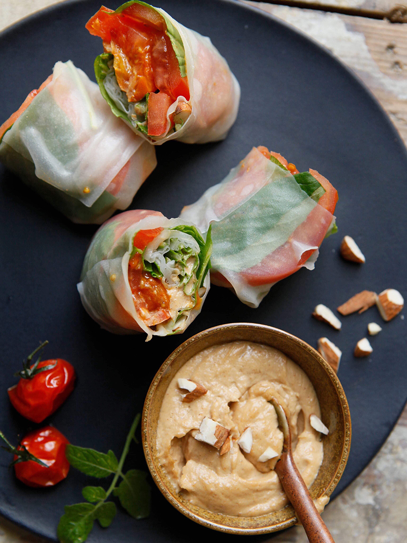 Rouleaux de printemps aux tomates de France, amandes et basilic