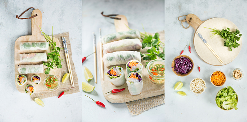 ⑤• Procéder ainsi pour tous les rouleaux de printemps !