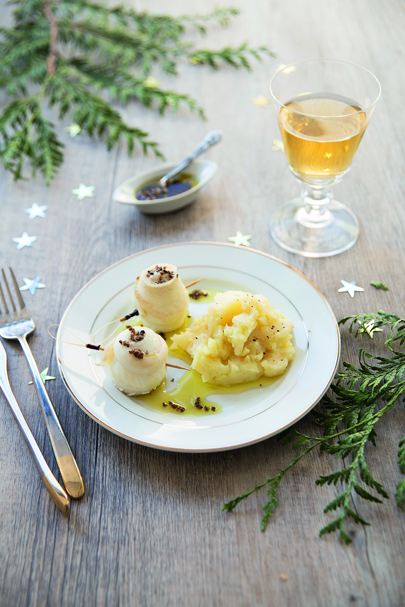 Roulés de sole au poivre, purée de céleri à l’huile de truffe