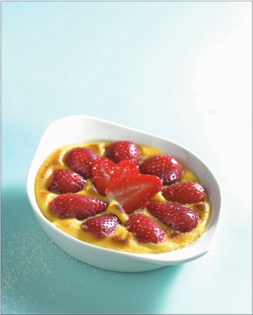 9• Versez le sabayon sur les fraises, en prenant soin de ne pas complètement recouvrir les fraises.
