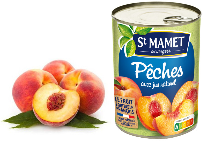 ► 140 g de pêches St Mamet (utiliser une boite de 850g pour le confit et le montage)