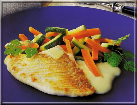 Servir les filets de saint-pierre sur des assiettes chaudes, accompagnés de légumes vapeur et nappés de sauce.