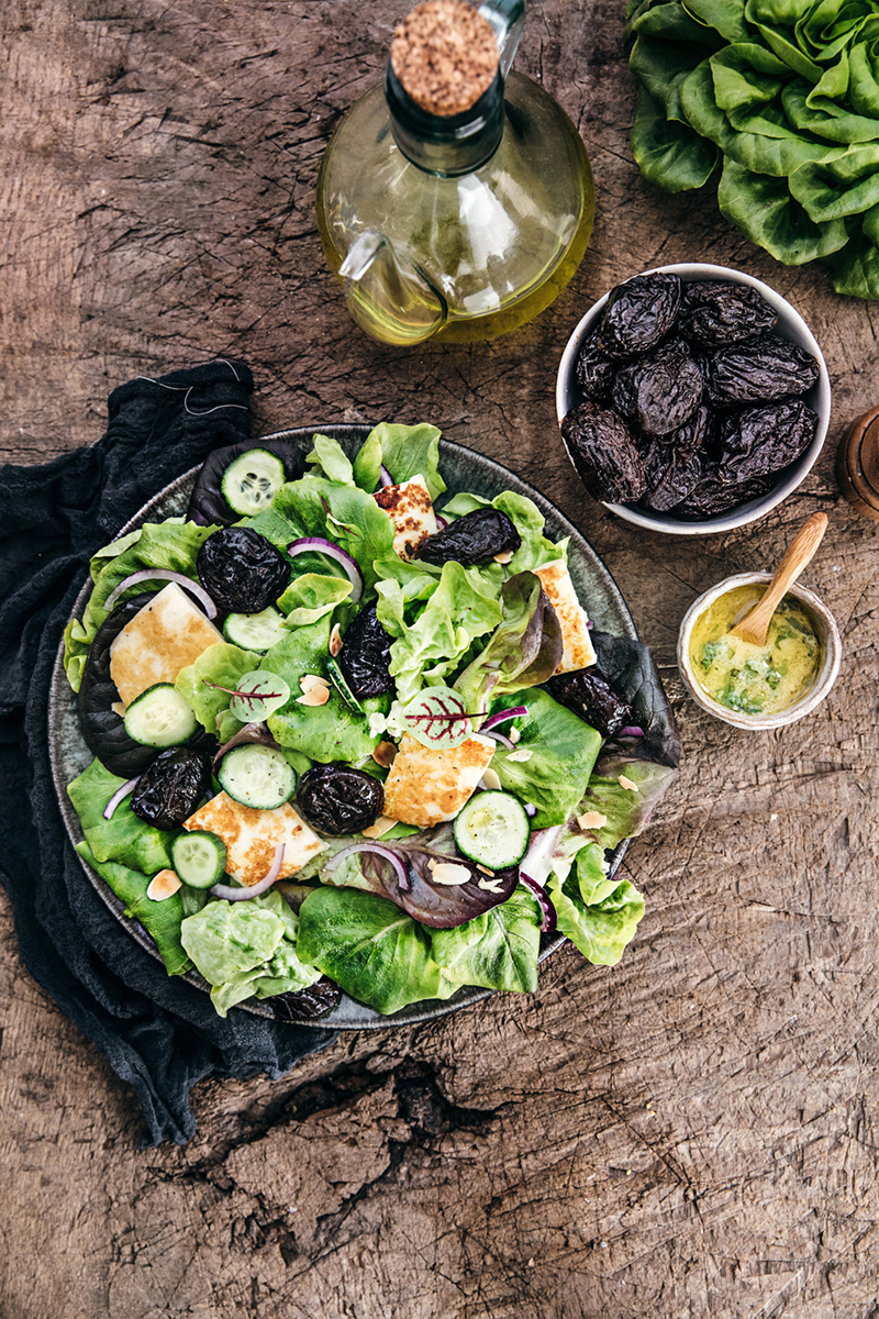 Salade aux Pruneaux d’Agen IGP, halloumi et amandes effilées
