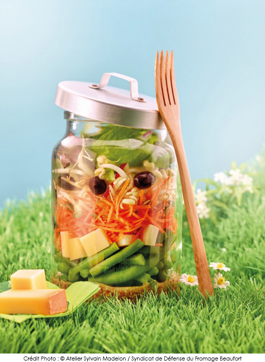 Selon l'inspiration, ajouter les différents légumes et le fromage par couche, en terminant par la salade verte.
