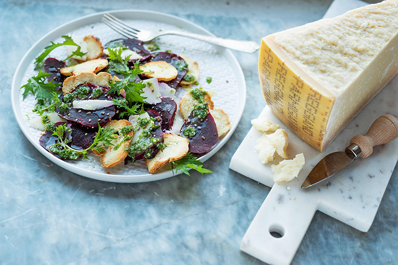 Salade de betterave rouge, parmesan et sauce aux herbes