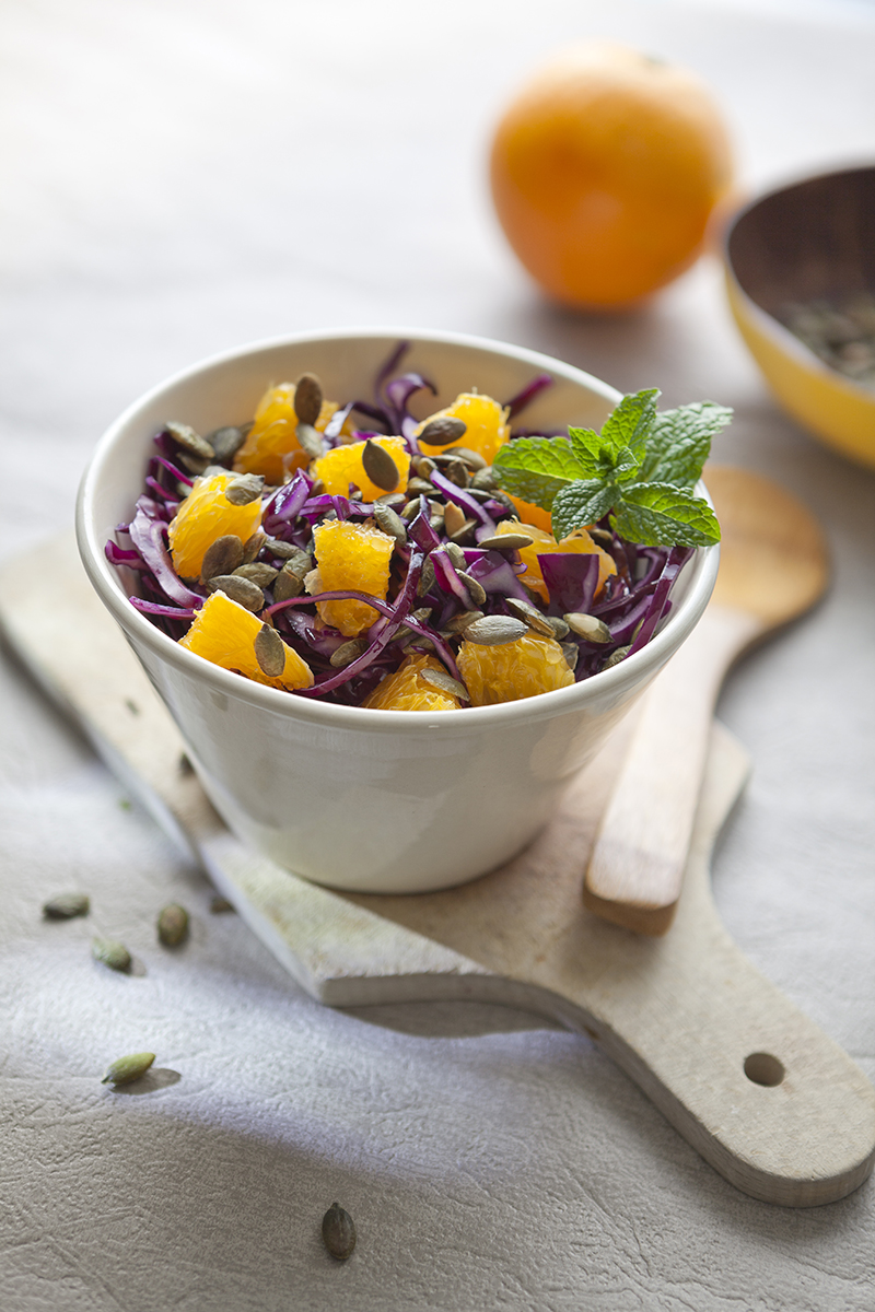 Ajouter les petits morceaux d'orange et les graines avant de servir.