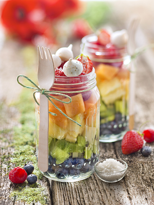 Astuce 1 : pour une salade de fruits bien fraîche, mettre les fruits au réfrigérateur 2 h avant de les préparer. Vous pouvez également réaliser les bocaux sans ajouter les meringues et les réserver au frais.