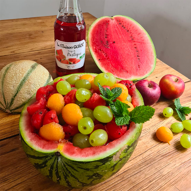 Astuce : idéal pour de délicieuses recettes à réaliser soi-même. En limonade, en thé glacé ou en sirop à l'eau, le sirop de pastèque La Maison Guiot se décline à l'envie pour twister toutes les boissons de l'été ! Un accompagnement parfait pour vos pique-niques gourmands.