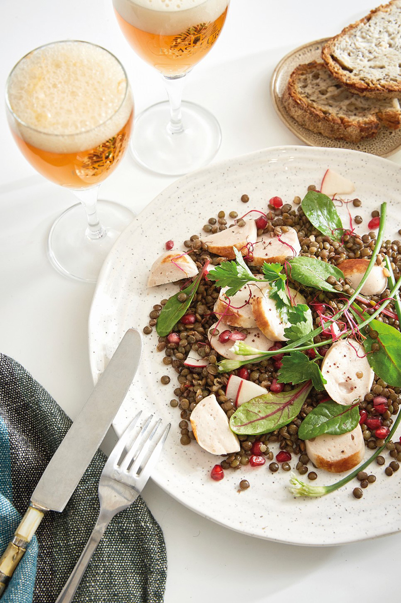 Le caractère désaltérant de cette bière vient équilibrer ce plat de légumineuses. Les notes épicées se marient à la douceur du boudin et complètent l’éclat fruité des grains de grenade.