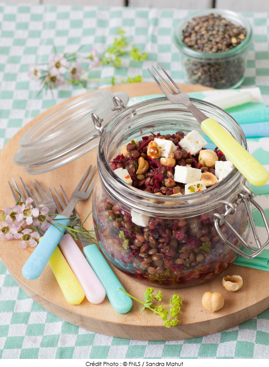 Salade de lentilles vertes du Puy, dés de féta et vinaigrette au miel
