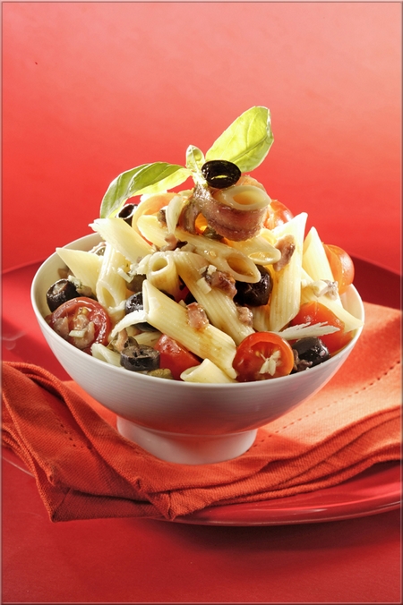 Pour que les pâtes ne collent pas en refroidissant, il suffit de les arroser de 2 cuillères d’huile d’olive, quant, elles sont encore chaudes et juste égouttées.
