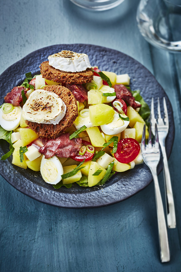 Salade de pommes de terre primeurs aux gésiers et fromages