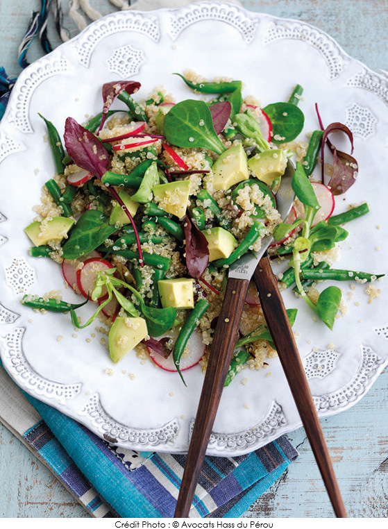 des radis croquants, des haricots verts et des avocats Hass péruviens crémeux.