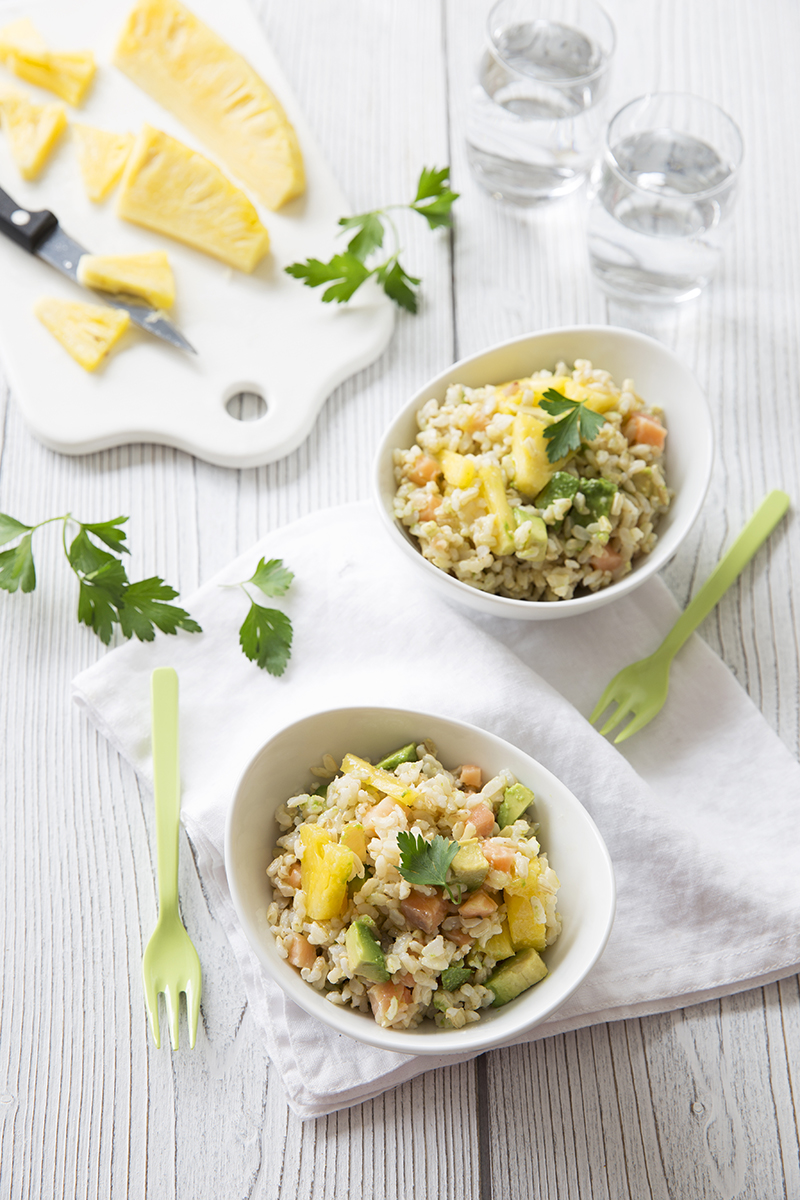 ①• Faites cuire le riz de Camargue dans une grande casserole d’eau salée le temps indiqué sur le paquet, environ 45 min. Égouttez-le dans une passoire et refroidissez-le avec un filet d’eau froide.