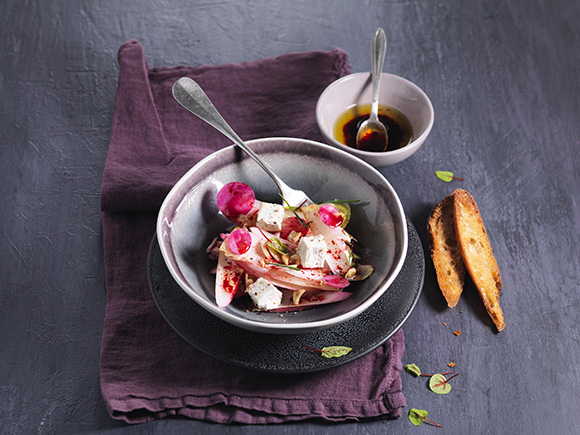 Salade d’endive au Carré Frais® Ail et Fines Herbes en vinaigrette de jus de betterave