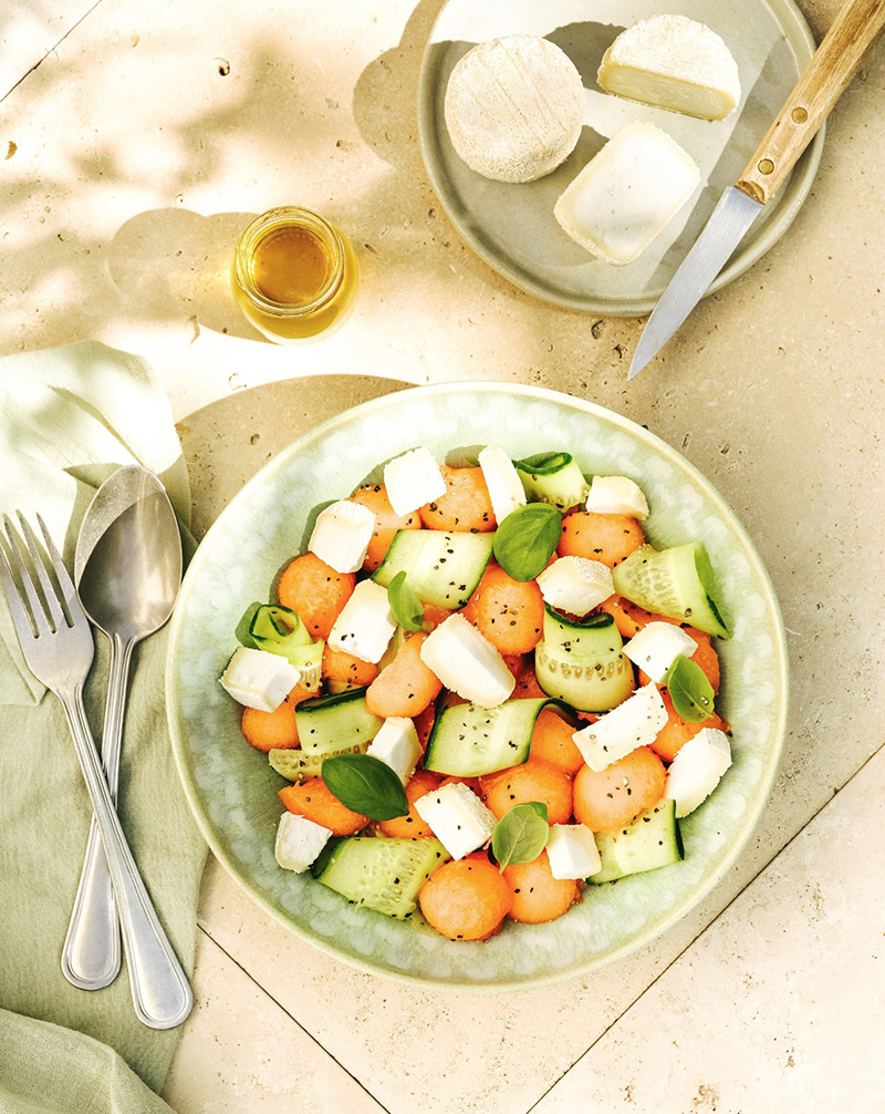 Salade fraicheur au melon, concombre et Chavignol AOP