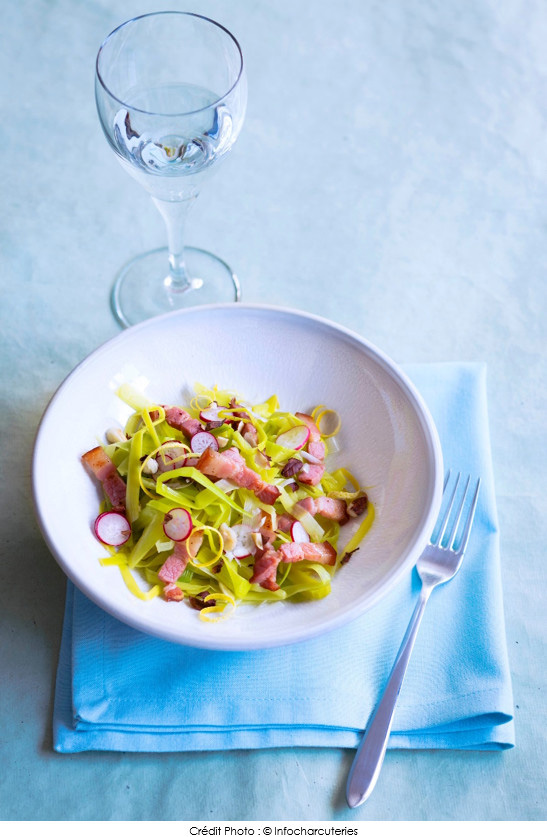 Salade gourmande lardons, poireaux et radis
