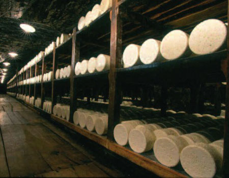 Ventilées par les « fleurines », cheminées naturelle qui assurent température et humidité constantes, les caves de Roquefort composent une impressionnante ville souterraine enserrée entre les parois rocheuses.