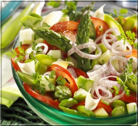 1- Faire blanchir 5 min les asperges vertes sans les éplucher. Les couper en fines rondelles, ainsi que les tomates et les Échalotes Traditionnelles.