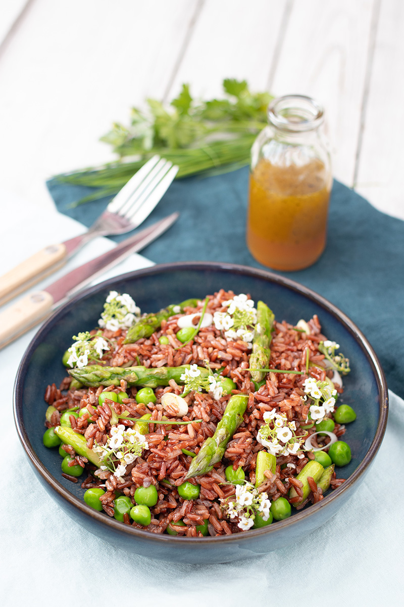 Envie de fraîcheur sur votre table, découvrez cette sublime salade printanière de riz rouge aux légumes croquants, un vrai cocktail de parfums et de saveurs.