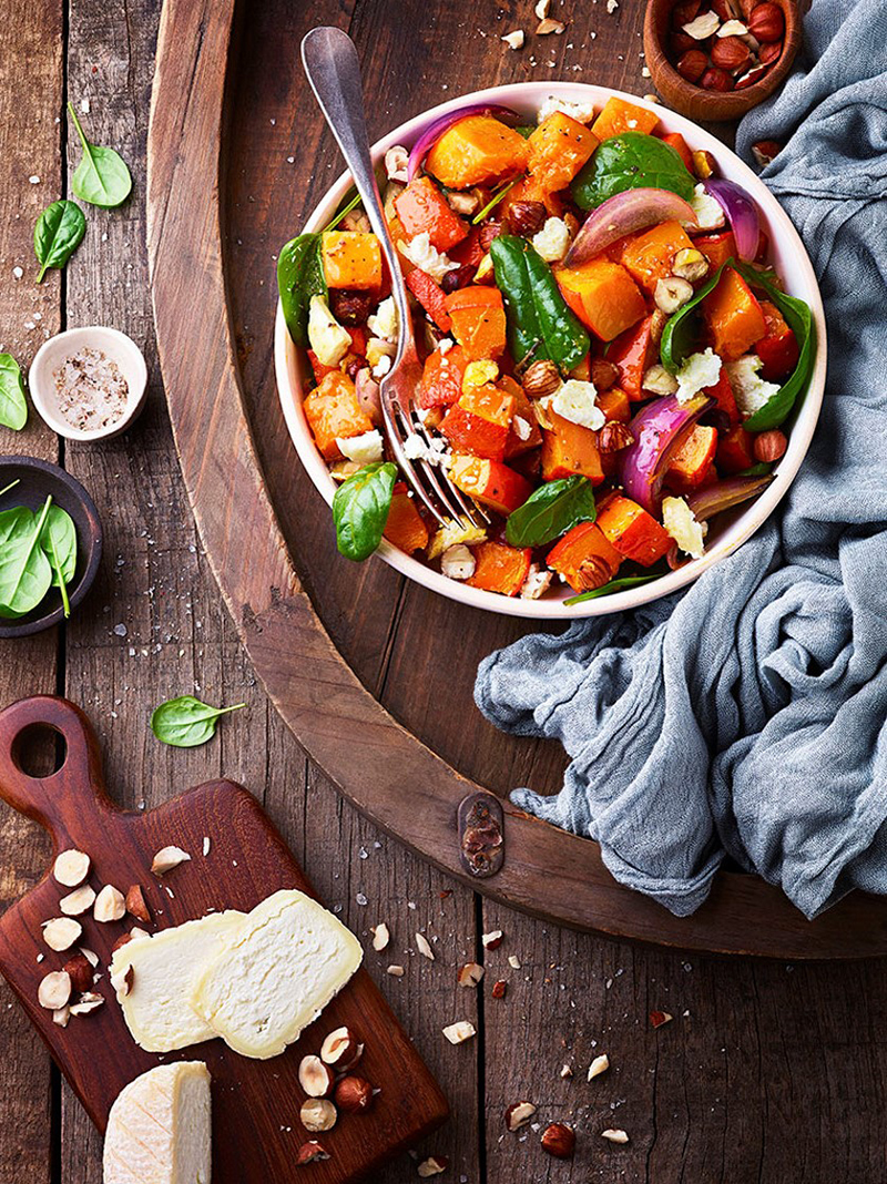 Salade tiède de potimarron rôti au chèvre