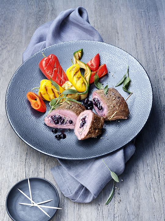 Saltimbocca d’Agneau aux Myrtilles Sauvages et Légumes Grillés