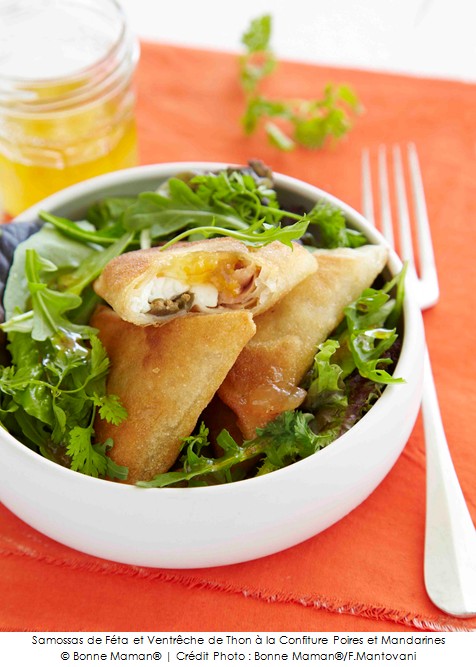 Samossas de Féta et Ventrêche de Thon à la Confiture Poires et Mandarines