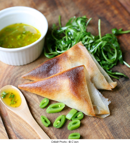 Astuces : Pour un apéritif, servez les samossas accompagnées de la sauce vinaigrette modifiée : en ajoutant 2 cuillères de miel, la vinaigrette devient un dip parfait !