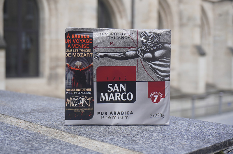 Entre le maestro du café et le prodige de la musique, l’alchimie était évidente. Sur son site Internet, SAN MARCO donne d’ailleurs le ton : « Per amore dell’ arte » ; l’amour de l’art ! De plus, la marque tire son nom de la légendaire place SAN MARCO de Venise, berceau des plus grands artistes où l’art et la beauté se conjuguent depuis des siècles en une source inépuisable d’inspiration. C’est dans cet héritage que San Marco a puisé pour créer le chef-d’œuvre du café italien : un café de caractère, subtil et voluptueux, où chaque tasse devient une émotion.